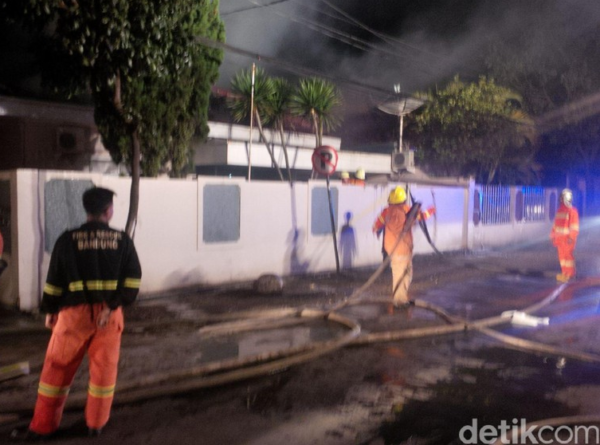 Bandung – Api membakar sejumlah rumah dinas anggota Polda Jawa Barat di Kota Bandung. Petugas pemadam kebakaran masih berjibaku memadamkan kobaran api.