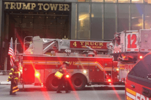 Asap membumbung tinggi dari gedung yang terletak di Midtown Manhattan. Meski begitu, api beranjak padam. Jalanan di sekitar gedung ditutup. Gedung ini dimiliki oleh Presiden AS Donald Trump, juga menjadi kantor pusat Organisasi Trump dan tempat tinggal.
